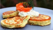 Сначала берем большую миску и готовим тесто для блинчиков. Насыпаем муку, разрыхлитель, соль и сахар, смешиваем. В отдельной мисочке взбиваем яйцо в пену. Добавляем к яйцам молоко и перемешиваем. Теперь молочную смесь соединяем с мучной. Аккуратненько перемешиваем. Растапливаем масло и вливаем в тесто. Снова перемешиваем.Разогреваем сковороду. Небольшие порции теста выливаем на горячую сковородку и обжариваем с двух сторон. Если тесто будет приставать, то сковороду можно смазать маслом. Выпекаем каждый блинчик примерно 2-3 минуты с каждой стороны.
