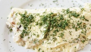 1. Взбейте яйца с солью и перцем в течении примерно 30 секунд, чтобы белки соединились с желтками.2. Затем смажьте не нагретую сковороду маслом и залейте туда яица.