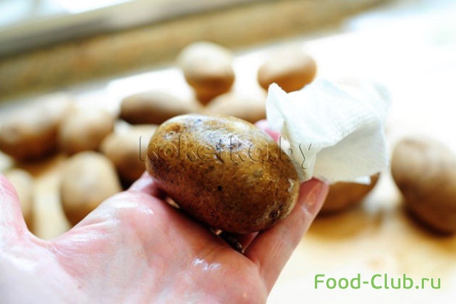 1. Хорошо промываем картофель и натираем его сливочным маслом.