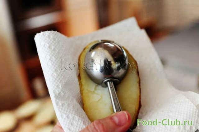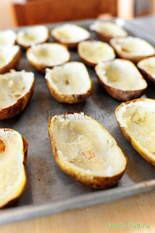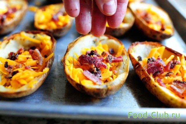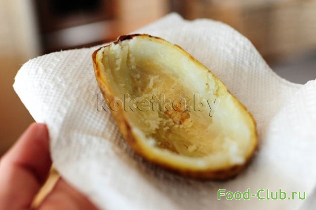 12. Когда кожура подрумянилась, выкладываем в нее сыр.