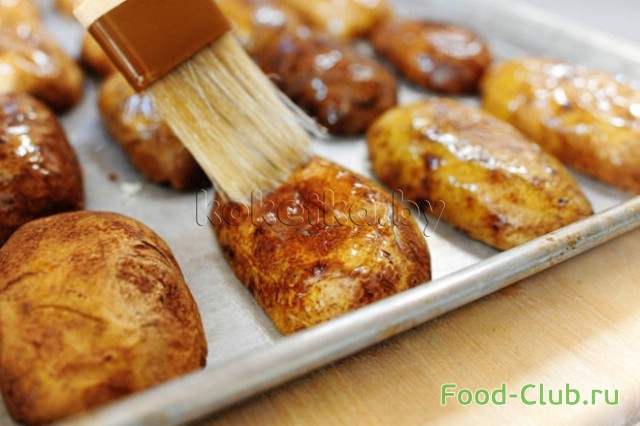 8. И обмазываем картофель со всех сторон. Ставим противень с картошкой в духовку на 5 — 7 минут.