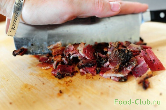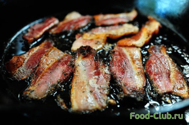 9. На сковороде, на среднем огне обжариваем бекон до золотистости.