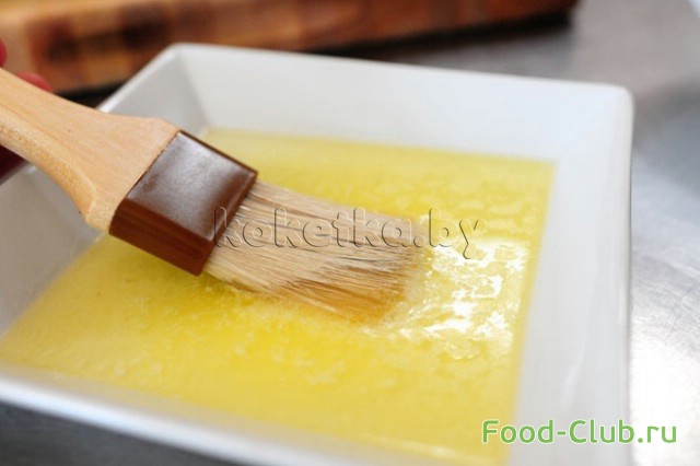 7. Обмакиваем кондитерскую кисть в топленое масло.