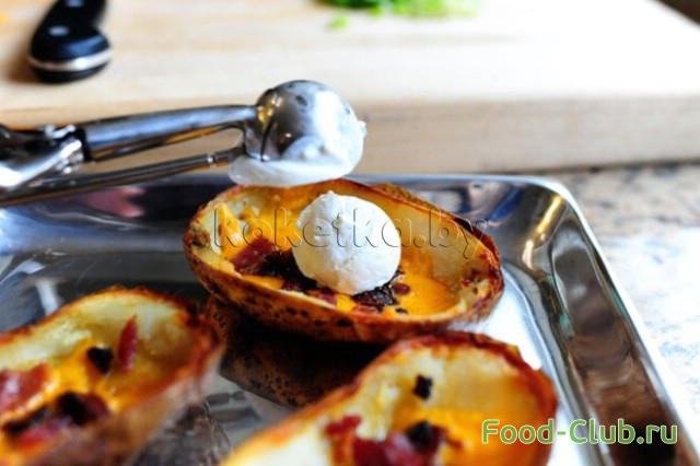 14. В каждую лодочку из картофеля выкладываем ложку сметаны.