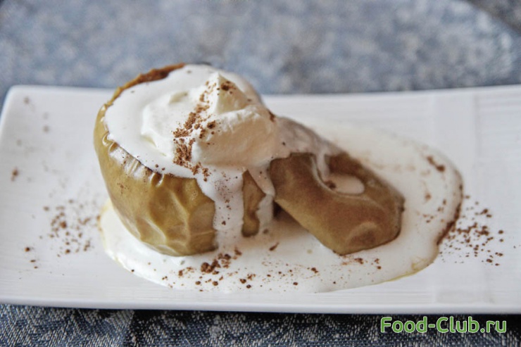 5. Взбейте сливки до состояния взбитых сливок, украсьте взбитыми сливками остывшие (!!!) яблоки.