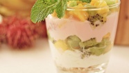 9. Нарезаем желтую дыню и кусочки ананаса.