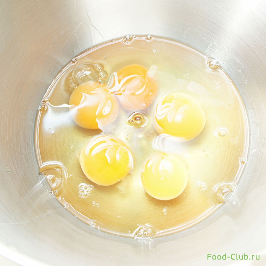 1. Яйца взбейте с сахаром и медом до белой плотной консистенции.