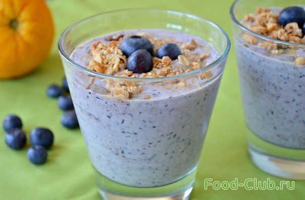 Очень вкусный и полезный завтрак! Готовить его проще простого. Попробуйте!Для начала овсянку залейте йогуртом или кефиром. Соедините чернику и банан, взбейте блендером до состояния пюре и добавьте к хлопьям.