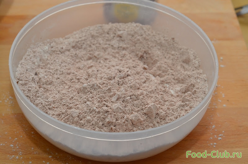 5. В отдельную миску просеиваем муку, разрыхлитель и какао, перемешиваем до однородности.