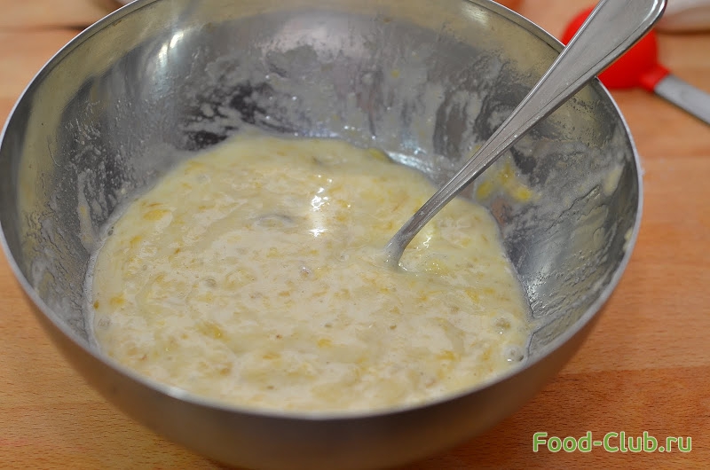 1. Вилкой разминаем бананы, до пюреобразной консистенции.