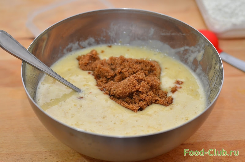 3. Засыпаем коричневый сахар, можно использовать и белый, но коричневый обладает более приятным карамельным вкусом.