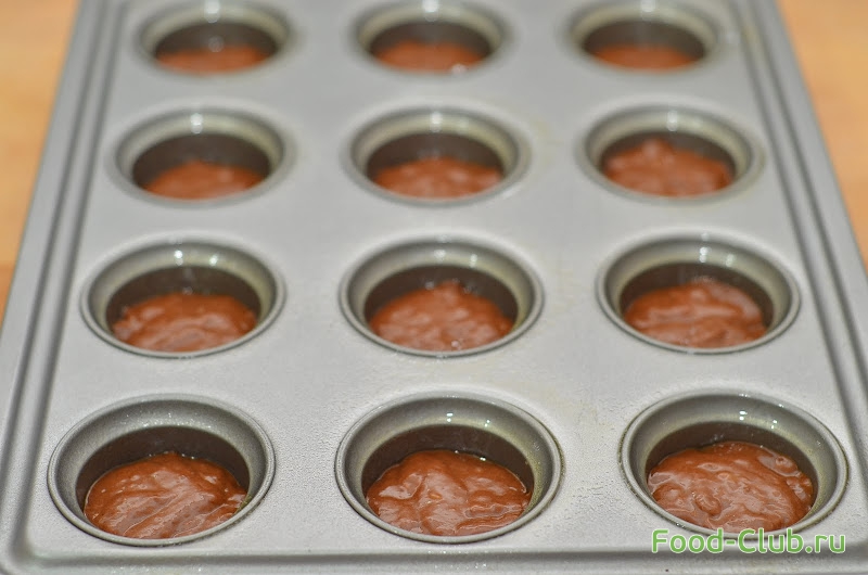 7. Выкладываем тесто в формочки для маффинов, заполняя их на 2/3 объема. Ставим форму в предварительно разогретую духовку на 15-20 минут, до готовности.