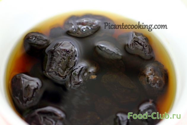 1. Чернослив без косточек заливаем коньяком и оставляем настаиваться 2 часа (можно настаивать до 24 часов).