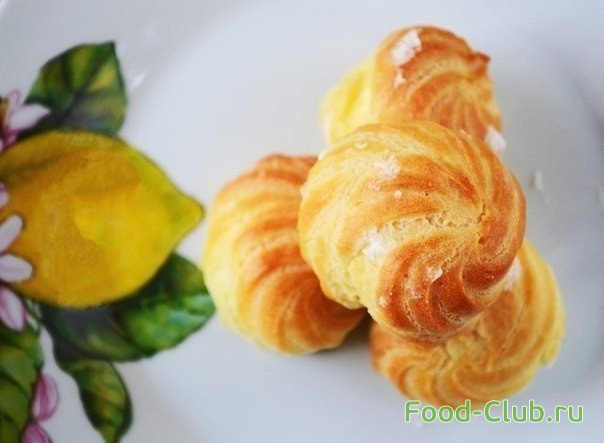 9.Готовые эклеры надрежьте пополам, начините кремом и прикройте. Приятного чаепития!