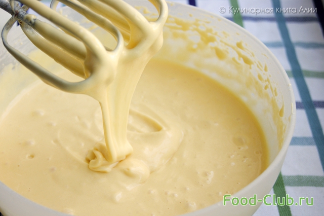 1. Сначала приготовим бисквит. Выложите в миску яйца, ванильный и обычный сахар и взбейте миксером на высокой скорости минуты 3. Добавьте молоко, разрыхлитель, растительное масло и муку. Смешайте все миксером до однородного состояния.
