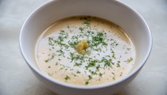 2. Почистите и мелко порежьте картофель, добавьте в бульон и варите до готовности.