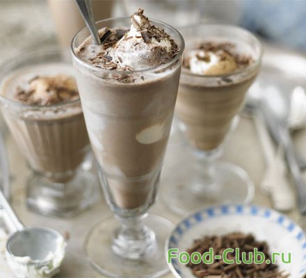 Разлейте по стаканам и посыпьте сверху натертым шоколадом (если хотите).