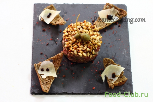 Cсылка на оригинальный рецепт: www.picantecooking.com/recipe/tartar-iz-govyadiny-s-kedrovymi-oreshkami