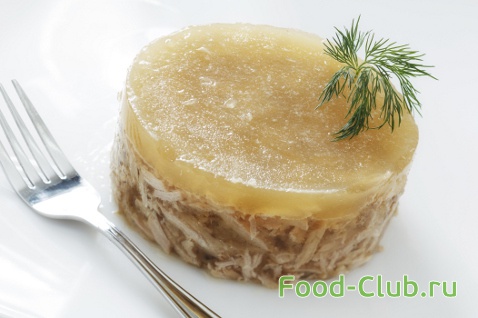 4. Мясо положите на дно формы, залейте бульоном и поставьте в холодное место до застывания.