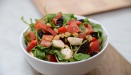 Картошку мелко нарезаем на кубички, мясо нарезаем мелкими кусочками, шинкуем лук. Свеклу и морковь трем на крупной терке, а яйца нарезаем соломкой. Трем сыр на мелкой терке. Перемалываем в блендере орехи. Теперь собираем салат: