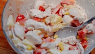 5. Сыр натрите на терке. Чеснок раздавите в чеснокодавилке. Смешайте сыр с чесноком и добавьте немного майонеза.