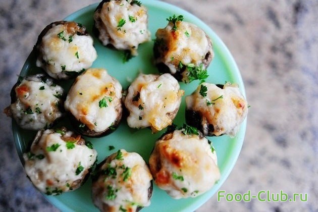 4. В серединку каждой шляпки выкладываем немного тушеного лука и солим по вкусу.Натрите сыр на терке.Выложите его в грибочки. Разогрейте духовку до 170 градусов и поставьте в нее грибы минут на 8. Готовые грибы переложите на бумажное полотенце, чтобы стек лишний жир. Приятного аппетита!