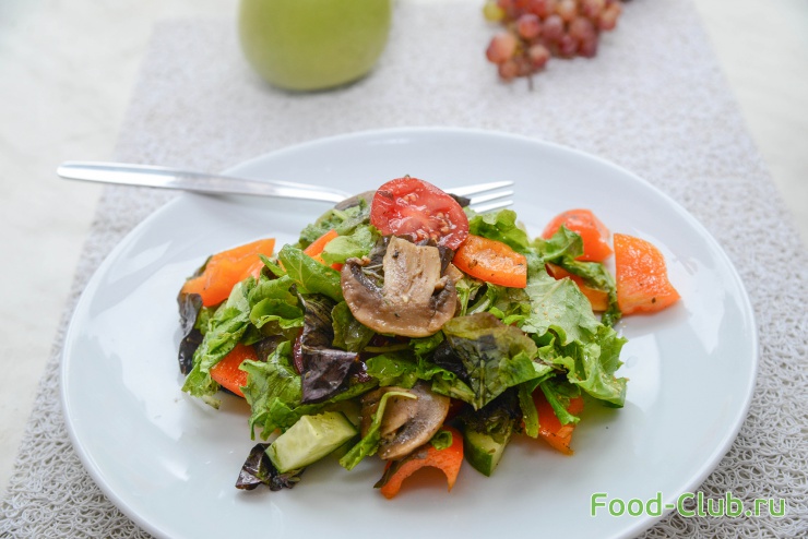 Отличный овощной салат с грибами