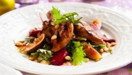 1. Свеклу отварите в мундире до готовности. Затем очистите и натрите на терке.2. Куриное филе отварите до готовности.