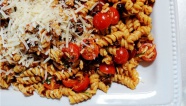 Когда вода с пасты полностью стечет, — добавляем соус и тщательно перемешиваем. Готово!