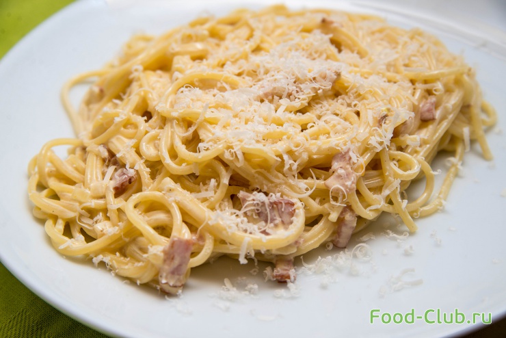 5. К этому моменты спагетти должны быть уже готовы. Добавьте их в сковороду к соусу вместе с тертым соусам и перемешайте.