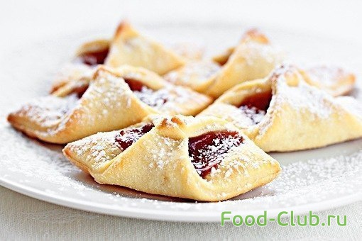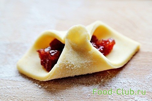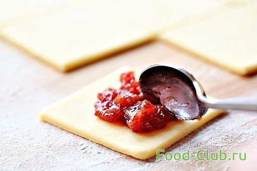 5. В центр каждого квадратика выкладываем 1 чайную ложку начинки.