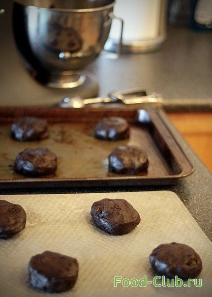 3. Разделяем массу на 12 частей, скатываем каждый кусочек в шар и слегка придавливаем в лепешку. Выкладываем печенье на застеленный пергаментной бумагой противень и выпекаем в предварительно разогретой духовке 15-20 минут.