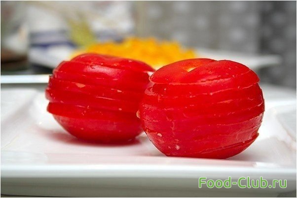 6. Выкладываем сверху помидоры, фарш, посыпаем перцем и зеленью.