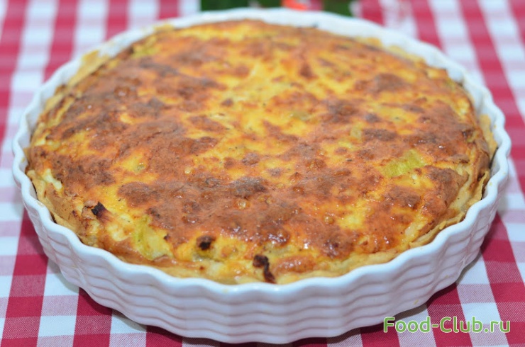 6. Теперь выкладываем начинку, затем- заливку. Ставим в духовку на 40-45 минут, пока пирог не станет румяным. Приятного аппетита!