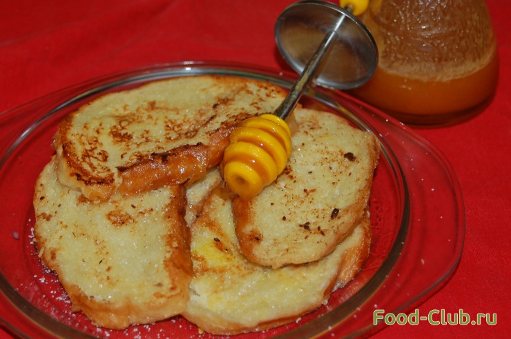 3. Разогрейте сковородку с маслом (я готовлю на растительном). Обжарьте гренки с двух сторон до легкой корочки. Внимание! Гренки останутся мягкими! Не нужно их засушивать. Посыпьте сахаром или полейте медом, джемом и подавайте к столу. Приятного аппетита!