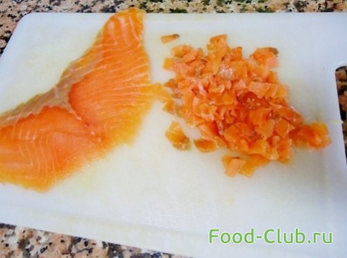5. Рыбу очищаем от кожуры и нарезаем небольшими кусочками произвольной формы.