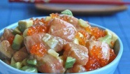 Для этого салата можно использовать не только лосось, но и любую другую рыбу: севрюгу, белугу, осетрину, судака.Варим рыбное филе, когда оно готово,- даем остыть и нарезаем мелкими кусочками. Кладем в салатник. Варим картошку «в мундире», ждем пока остынет, снимаем кожицу, режем брусками и добавляем к рыбке.