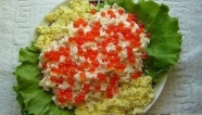 Сначала ставим яйца вариться в крутую.Крабовое мясо нарезаем на длинные полосочки.