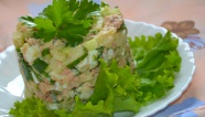 Заправляем салат майонезом, солим и перчим, перемешиваем и можно подавать к столу!