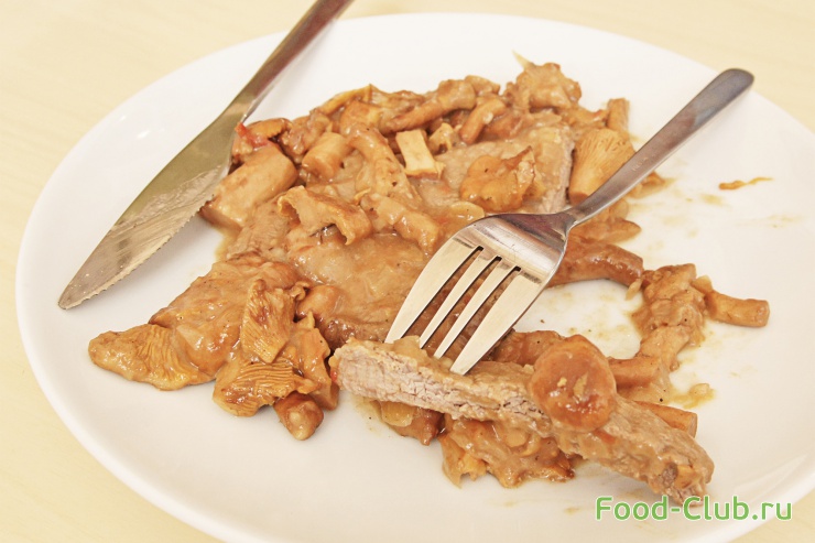 В получившийся томатный соус добавьте мясо с грибами и готовьте около 1 минуты. Затем добавьте вино и готовьте на сильном огне до испарения вина.