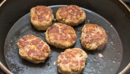 3. На умеренном огне разогрейте сковородку с маслом (я готовлю на подсолнечном). И жарьте рулетики со всех сторон, начиная с той, где расположен шов. Когда сторона со швом хорошо прожарится, можно вытащить зубочистки.