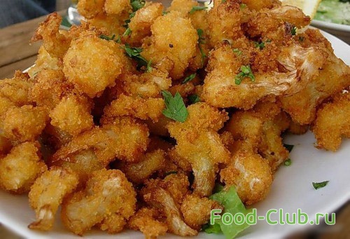 3. Всыпаем муку в глубокую тарелку или миску и перемешиваем с солью, растертыми перцем и тмином. В другой миске взбиваем яйца, массу подсаливаем. На третью тарелку выкладываем сухари. Обваливаем соцветия цветной капусты в муке, затем опускаем их в яйцо, а после этого – в сухари.