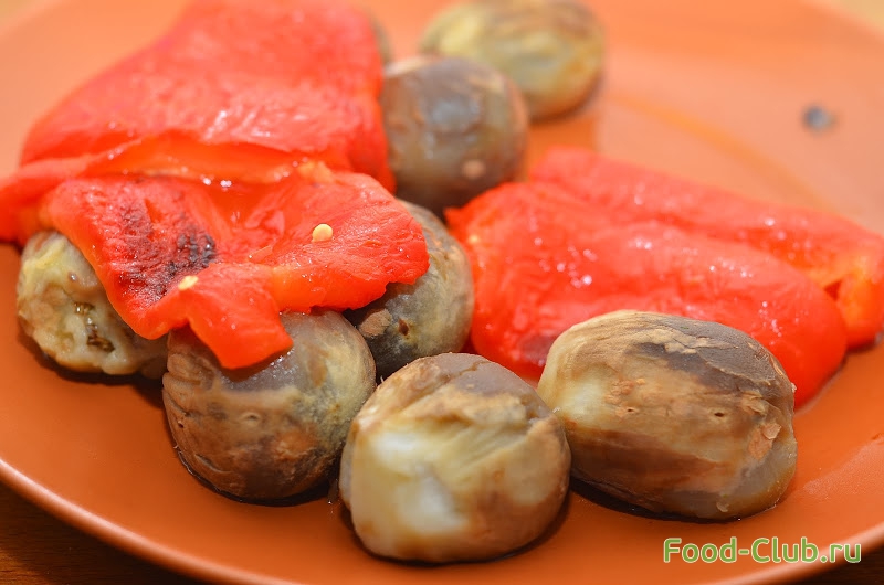 5. Готовые овощи достаем из духовки и остужаем, затем аккуратно очищаем от кожицы и семян.