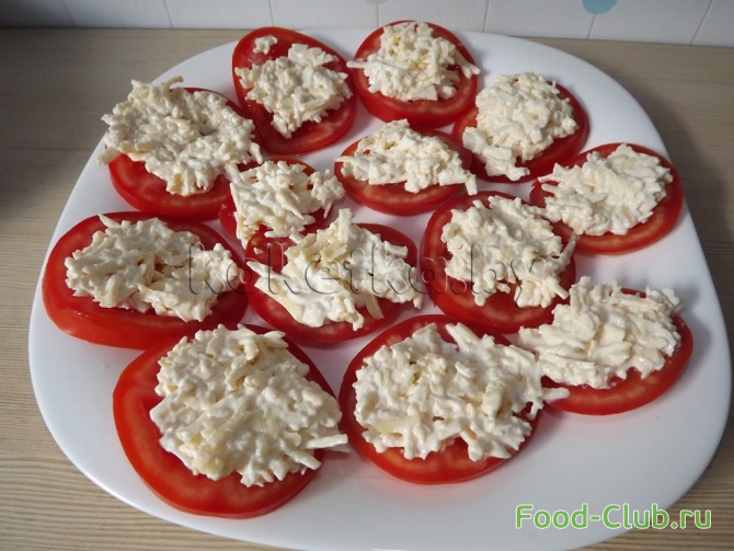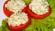 5. Поверх помидоров выкладываем начинку. Закуска готова, можно подавать к столу. Приятного аппетита!
