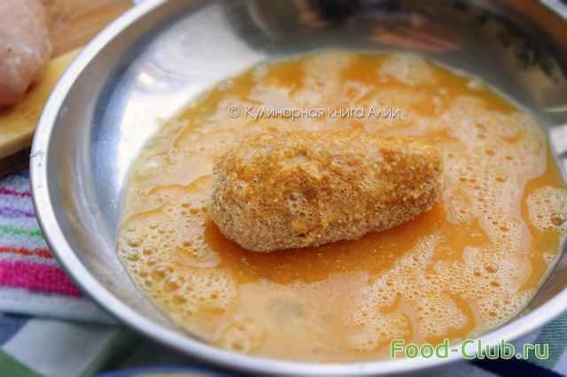 2. Теперь панируем котлеты. Панировка для киевских котлет должны быть толстой, поэтому панируем таким образом: мука- яйцо-сухари-яйцо-сухари.