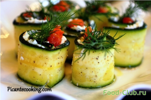 Ссылка на источник рецепта: www.picantecooking.com/recipe/ruletiki-iz-tsukkini-s-kopchennoi-semgoi