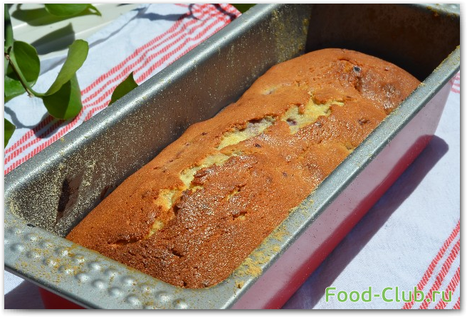 6. Ставим форму в предварительно разогретую духовку на 50-60 минут, готовности выпечки проверяем спичкой. Готовый кекс достаем и даем остыть.