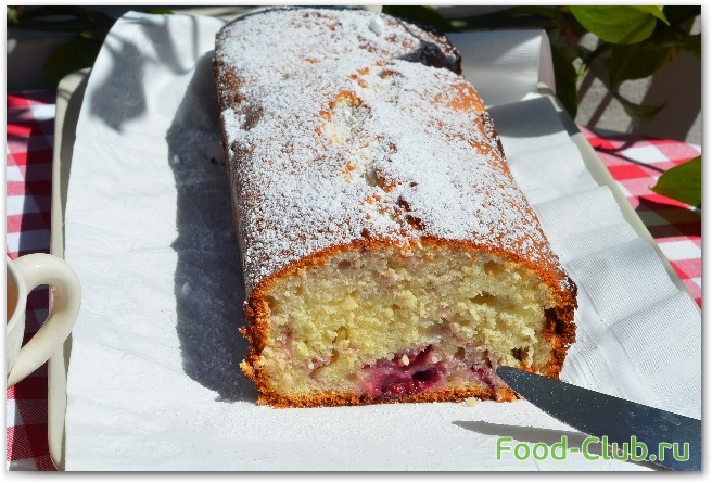7. Остывший кекс посыпаем сахарной пудрой, нарезаем на порции и зовем домочадцев к столу. Приятного чаепития!