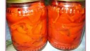 1. Стерилизуйте банки. В каждую банку (3 л) положите по 3-4 горошины перца, 3-4 шт бутончика гвоздики, по зубчику чеснока (порежьте на кусочки), по 1-2 лавровых листа, по 2 ст.л. порезанного болгарского перца и немного порезанного чили перца.2. Затем выложите помидоры (не забудьте хорошо вымыть и обсушить), залейте в банки кипяток, оставьте на 30 минут, затем слейте.