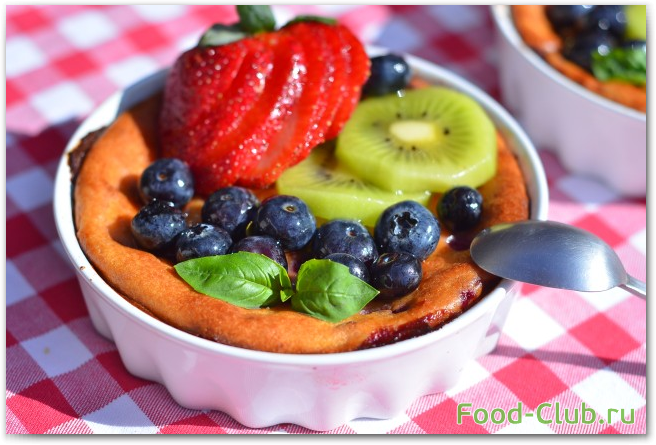 5. Украшаем блюдо свежими фруктами и подаем к столу. Приятного аппетита!